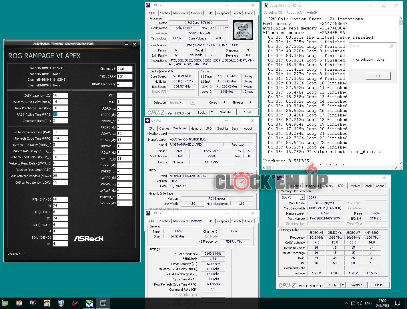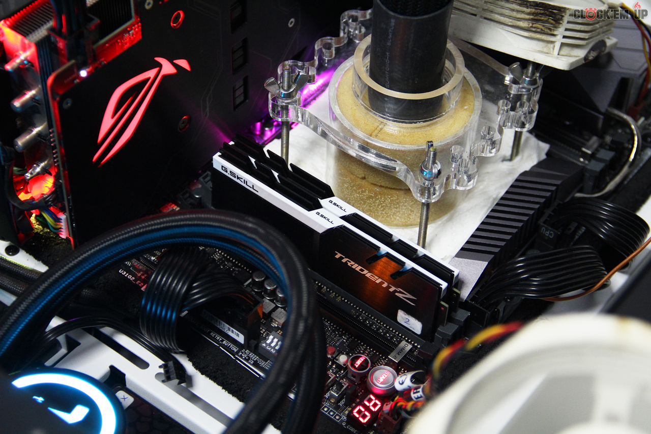 Memory DDR4 Module แบบ DUal Channel ที่เราเลือกใช้คือ G.Skill Trident-Z DDR4-3200CL14-14-14-34 16GB-Kit ซึ่งเลือกใช้ชิปแรมจาก Samsung รหัส B-Die ตัวแรงที่เป็นที่กล่าวถึงมากที่สุดในวงการ Overclock เพราะสามารถ Overclock เพิ่มความเร็วแรมไปได้มากถึงระดับ DDR4-4000Mhz ไปจนถึงระดับ DDR4-5xxxMhz+ ได้ด้วยการระบายความร้อนด้วย LN2 หรือจะเอามาจบกด CL12-11-11-28 ได้ที่ความเร็วระดับ DDR4-4000 ถึง 4133Mhz+ ก็ยังทำได้เช่นกันครับ ทั้งนั้นและทั้งนั้ก็ขึ้นอยู่กับการคัดเลือกเม็ดแรมกันอีกทีว่าวิ่งดีและถนัดในช่วงความถี่ไหน เล่นแรม B-Die บางตัวอาจจะเน้นลากแรมความเร็วสูงๆ เป็นหลักเช่น DDR4-4500Mhz+ หรือเน้น Latency ต่ำที่นัก Overclock ใช้ในการรีด Performance กันคือ DDR4-4000Mhz CL12-11-11-28 นั่นเอง และยังตัวแปลอีกหนึ่งอย่างนึ่งเลยก็คือ PCB ที่เลือกใช้นั้นมีผลอย่างมาก ดังนั้นผลการทดสอบในครั้งนี้ผมจึงจับคู่กับแรมรุ่นนี้กับ RAMPAGE VI APEX ครับ
