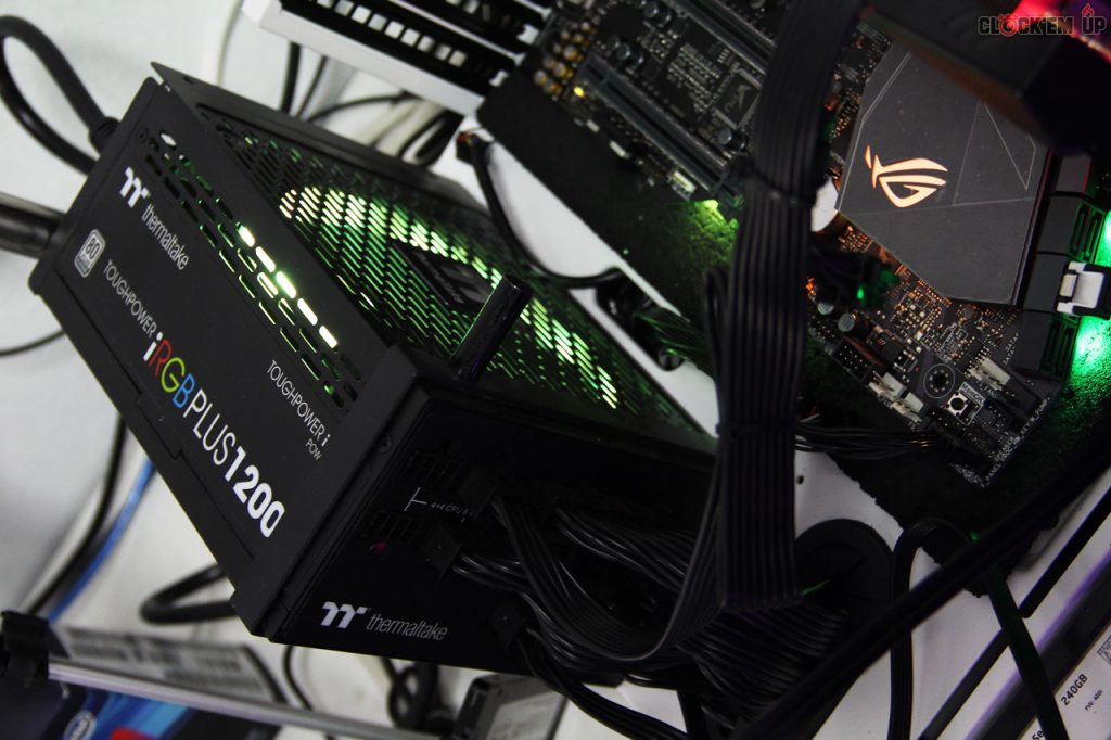 Power Supply Unit นั้นวันนี้เราใช้ Thermaltake iRGB PLUS 1200Watt จุดเด่นของมันในครั้งนี้คือจ่ายไฟได้ค่อนข้างเรียบและมีความเสถียรภาพดีในระดับหนึ่งเลยทีเดียว ถึงแม้ในการทดสอบครั้งนี้จะไม่ได้เรียกใช้ Load อะไรมากมาย แต่หาก PSU จ่ายไฟไม่เนียนเรียบพอ ก็มีโอกาสสูงที่การ Overclock จะไม่ค่อยเสถียร หรือไปได้ยากนั่นเอง