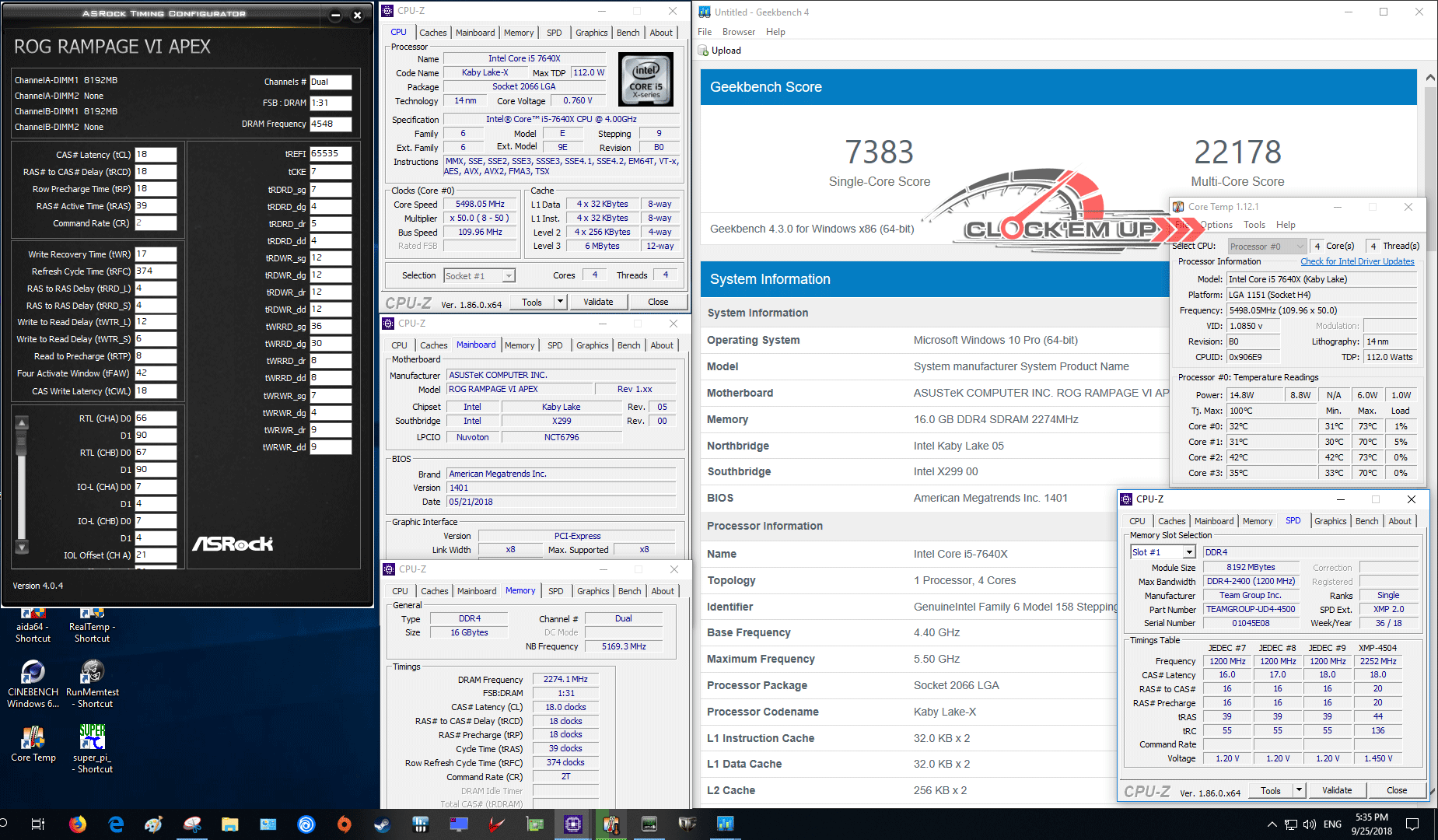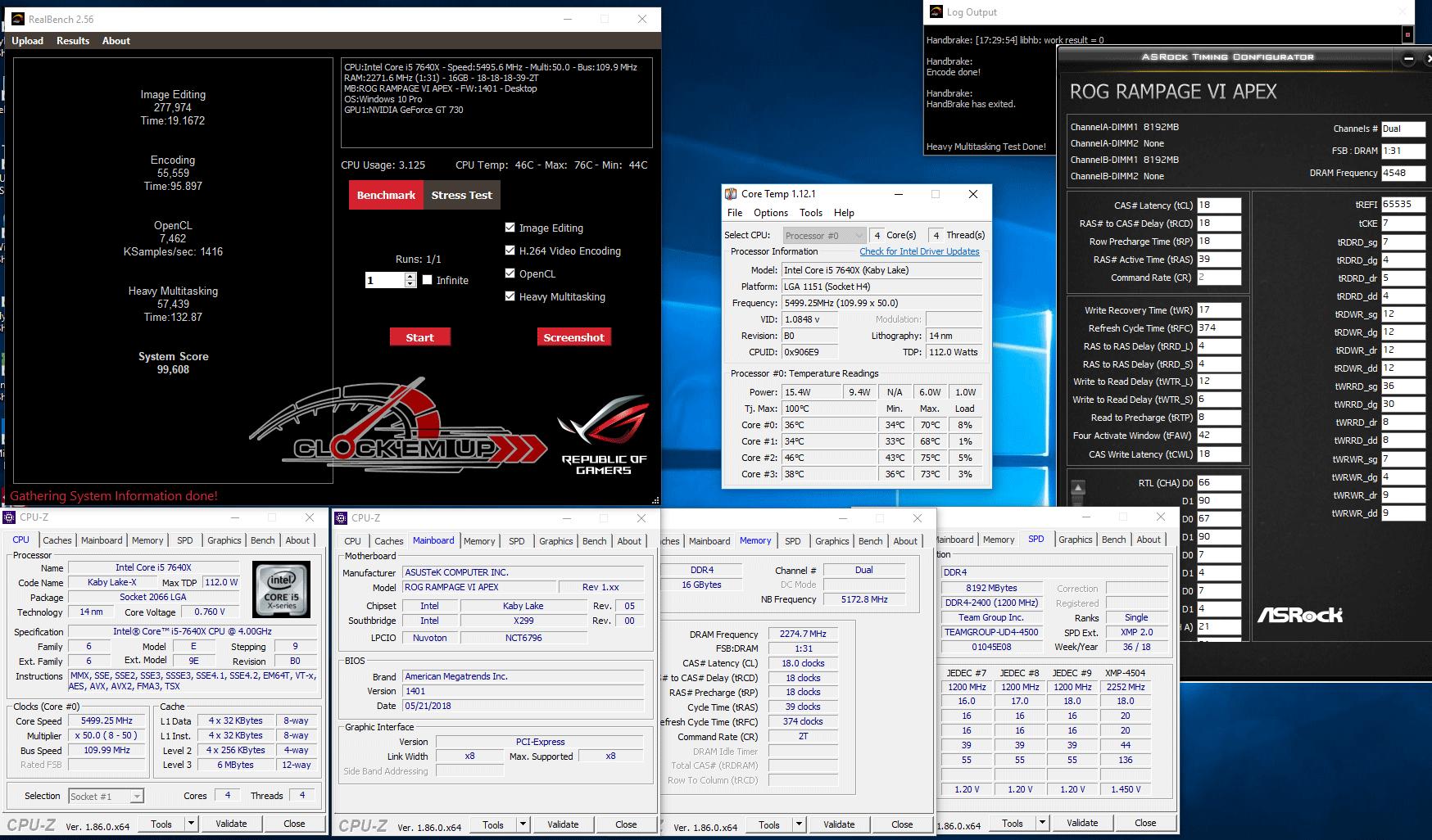 มาต่อกันอีกหนึ่งบอร์ดเลยนะครับสำหรับพี่ใหญ่ ROG RAMPAGE VI APEX (X299) ต่อใช้งานร่วมกับ CPU Intel Core i7-7640X @ 5.5Ghz/Cache 5.16Ghz + DDR4-4544Mhz CL18-18-18-39 2T 1.45V + Tight Sub-Timing แบบเกือบแน่น ก็พอที่จะทดสอบ Benchmark ต่างๆ ผ่านได้อย่างมีเสถียรภาพดีบนเมนบอร์ดรุ่นนี้ ซึ่งปกติแล้วหาคู่จับได้ยากครับ และที่สำคัญผมปรับ XMP 4500 บูทติดทีเดียวได้เลย จัดว่าแรมคู่นี้ไปได้ทุกบอร์ดจริงๆ ครับ ไม่เลือกบอร์ดมากเหมือนแรม PCB แบบเก่า…