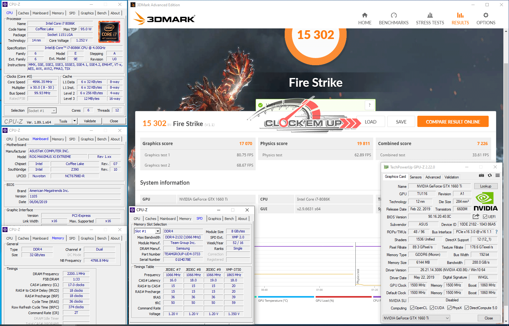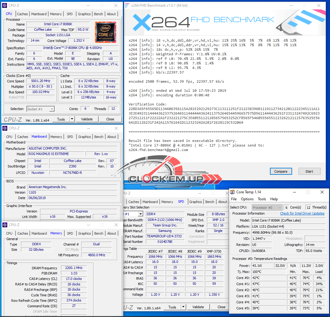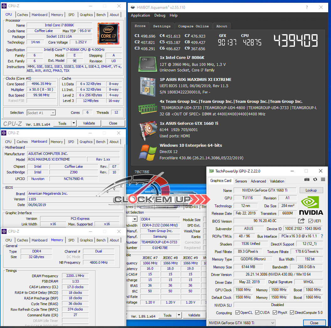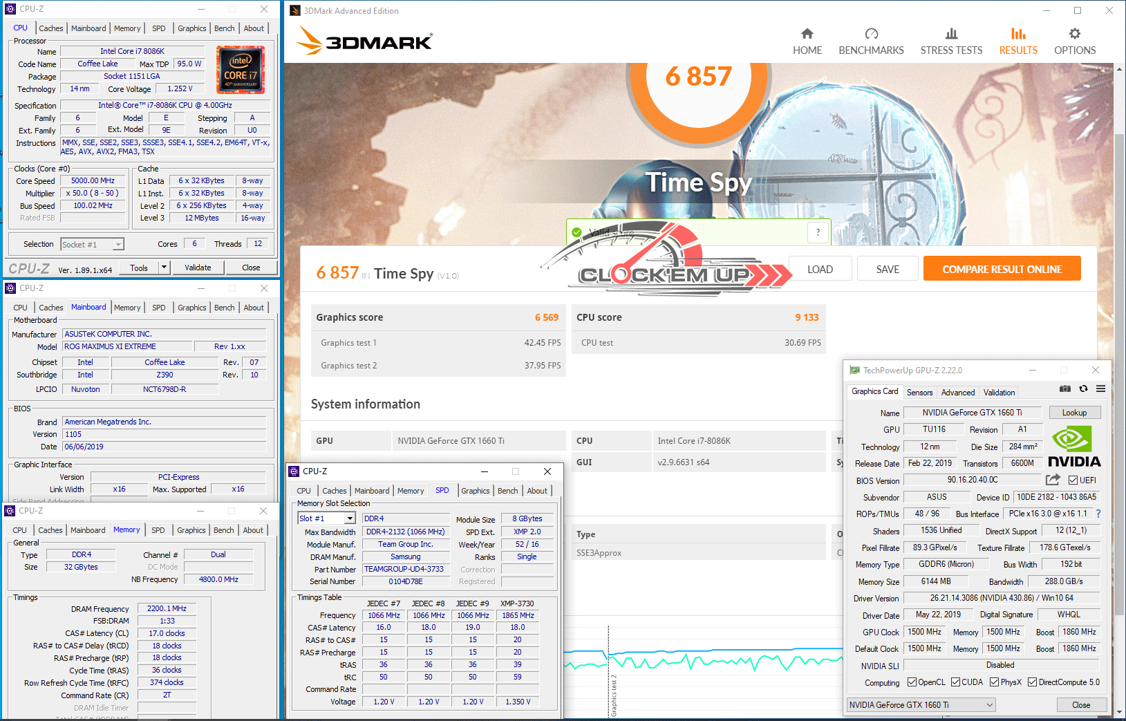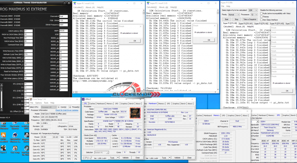 เอาล่ะครับก็มาถึงช่วงของการทดสอบแล้ว โดยวันนี้ค่า Config หลักในการ Overclock ครั้งนี้ก็คือความเร็ว CPU Intel Core i7-8086K 6C/12T ทำงานที่ความเร็ว 5.0Ghz/Cache 4.8Ghz All Core ใช้ไฟเลี้ยงที่ตั้งจาก BIOS 1.25V + LLC Level 8 และในเรื่องของการ Overclock แรมนั้นเราตั้งโจทย์ไว้ที่ DDR4 ความเร็ว 4400Mhz ด้วยแรมที่ติดตั้งไปจำนวน 4 แถว โดยเป็น Samsung B-Die ทั้ง 4 แถว และผลการทดสอบของเราที่ดูแล้วค่อนข้างเป็นไปได้ก็คือที่ความเร็วแรม DDR4-4400Mhz CL17-18-18-38 2T 1.52V พรอ้มกับการปรับแต่ง Sub-Timing ที่พอจะทำให้ระบบเสถียรภาพพอที่จะรัน Bechmark ต่างๆ ผ่านได้แบบไม่ยากเย็นนัก แต่ก็ไม่ถึงกับว่าจะเสภียรแบบ 100% นะครับ เพราะถ้าจะเอา Memtest ผ่านด้วยนี่ เราแทบจะแตะ Sub-timing ตัวหลักๆ ไม่ได้เลย ดังนั้นรีวิวฉบับนี้ก็จะให้ชมถึงพลังความแรงของ Config นี้ให้สาวก ROG ได้ชมกันไปก่อน… เพราะแค่นี้ ก็งานหินมากๆ แล้วครับพี่น้อง x_x…