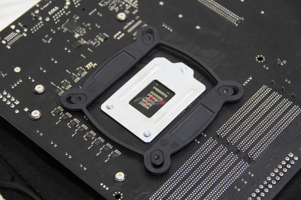 บริเวณด้านหลังเมนบอร์ดก็จะใช้ชุด Black plate ที่มีหน้าตาหคล้ายๆ กับชุดน้ำ OEM ที่นิยมใช้กันหลายๆ ค่ายครับ ก็น่าจะนึกออกกันนะครับ ฮ่าๆ….