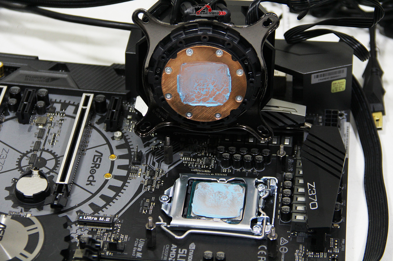 ตรวจเช็คการรีดซิลิโคนบริเวณหน้าสัมผัสของ CPU และบริเวณตัว Block AIO ครับ