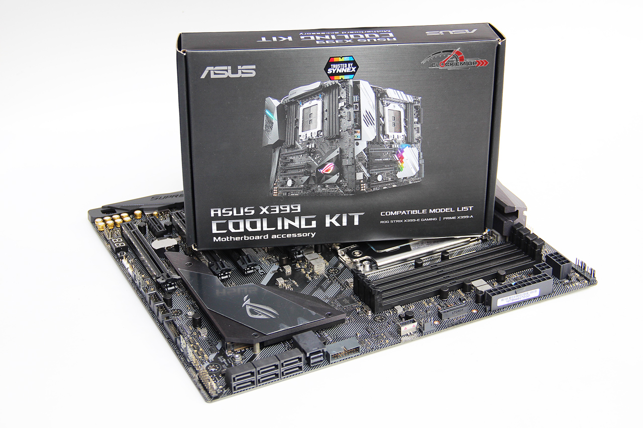 และสำหรับลูกค้าที่ซื้อเมนบอร์ด X399 จากทาง ASUS รุ่นนี้ แถมฟรี!!! ชุด ASUS X399 Cooling Kit สำหรับ ROG STRIX X399-E GAMING และ PRIME X399-A ที่สามารถใส่ด้วยกันได้ครับ โดยที่แถมมาให้นี้คือเหมาะสำหรับการระบายความร้อนสำหรับชุดภาคจ่ายไฟ SOC ของ CPU ที่อยู่บริเวณกลางเมนบอร์ด โดยยิ่งทำการ Overclock ร่วมกับ CPU AMD RYZEN Threadripper Gen2 แล้วล่ะก็จำเป็นมากครับที่จะต้องติดตั้งชุดระบายความร้อนนี้ลงไปครับ