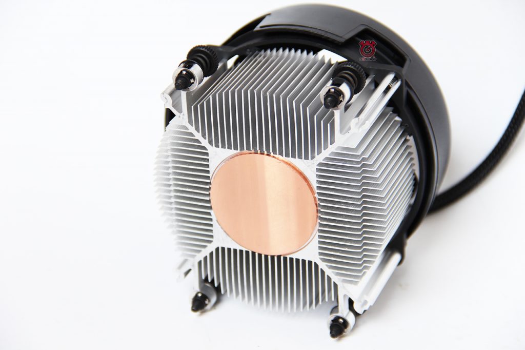 บริเวณฐาน Base ด้านล่างจะเป็นแกนแบบทองแดง และใช้ครับระบาบความร้อนที่ทำจากอลูมิเนียม และไม่มีการใช้ท่อ Heatpipe ช่วยในการนำความร้อนแต่อย่างใด
