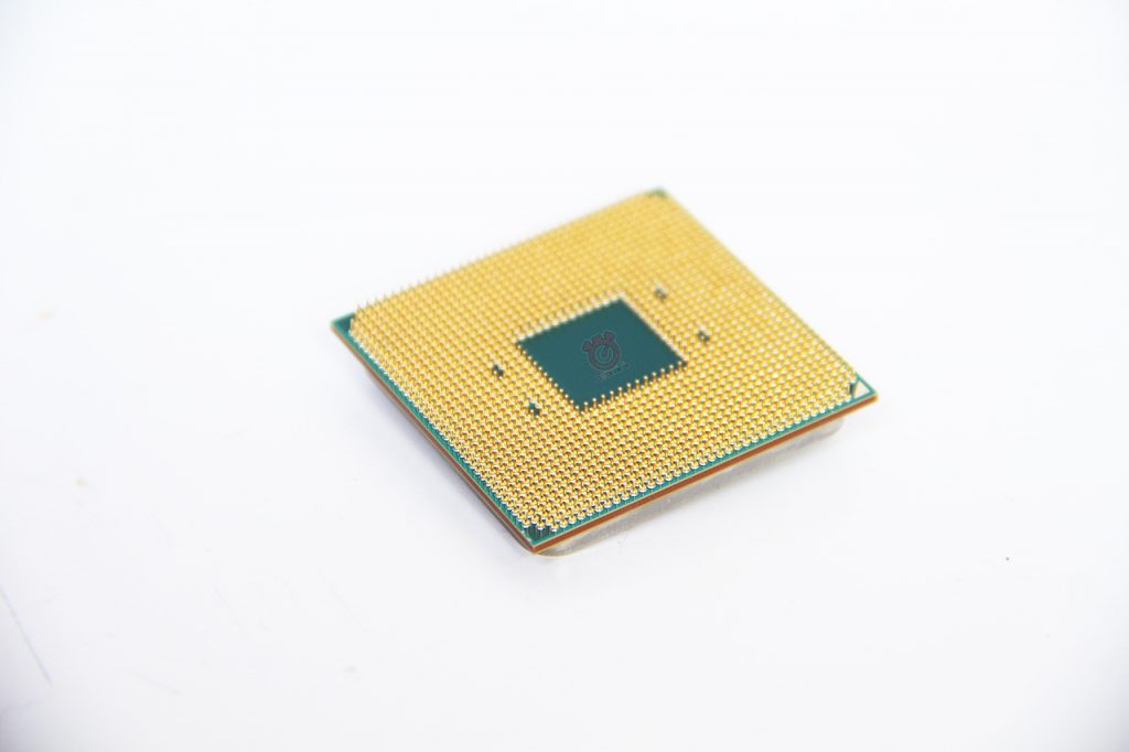 บริเวณด้านหลังของ CPU พร้อมกับ Pin ขาทั้งหมด 1331 ขาที่ต้องต่อใช้งานกับเมนบอร์ด Socket AM4 ที่มาพร้อมกับชิปเซ็ต AMD 300/400 Series ได้เท่านั้น ส่วนถ้าจะ Overclock CPU ได้แบบจัดเต็มนั้นจำเป็นต้องต่อใช้งานร่วมกับเมนบอร์ดชิปเซ็ต AMD B350/B450, AMD X370/X470 ถึงจะรองรับการ Overclock ได้
