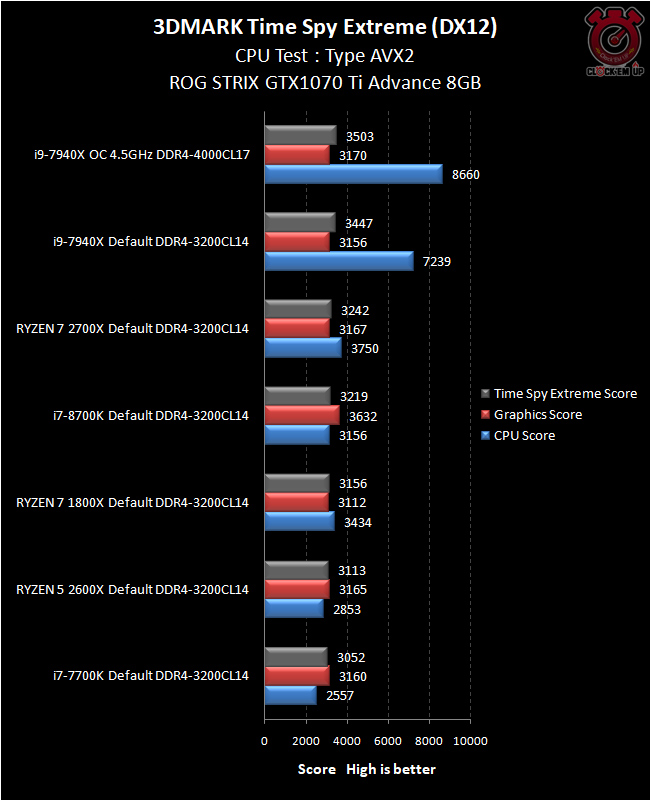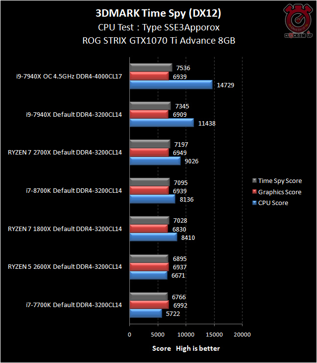 และกับ 3DMARK Time Spy นั้นผลการทดสอบกลับไม่ผิดปกติแต่อย่างใด โดยที่ 2700X นั้นกลับมานำทันทีเมื่อเทียบกับ 1800X และ 8700K โดยทุกอย่างก็เป็นไปตาม Scale ครับ