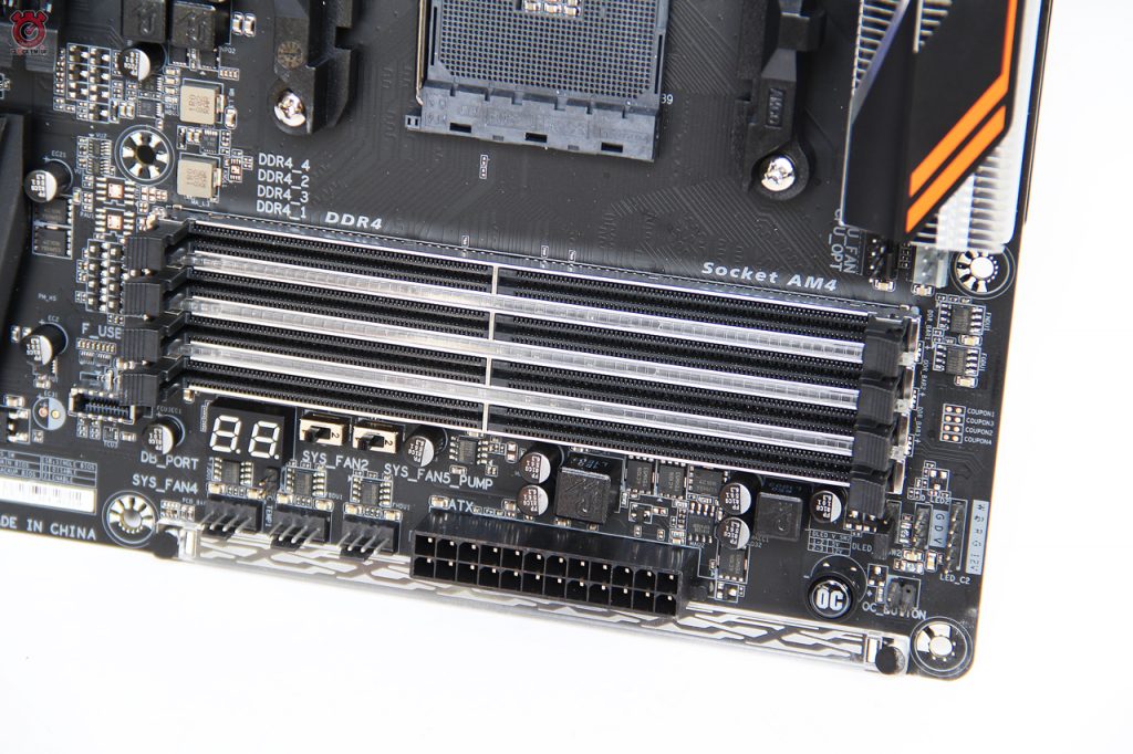 รองรับการต่อใช้งานร่วมกับ Memory DDR4 Module แบบ Dual Channel จำนวน 4xDIMM ตั้งแต่ความเร็วพื้นฐาน DDR4-2133Mhz ไปจนถึงความเร็วแบบ Overclock Module ในระดับ DDR4-3600+ (OC.) โอว์…. ได้ถึง 3600Mhz กันเลยเหรอเนี่ย ปกติมาได้ยากมากนะ AMD กับแรมบัส 3600Mhz+ เป็นอะไรที่ไม่ใช่เรื่องง่ายๆ นะเออ…. ดังนั้นก่อนซื้อแรมบัส 3600Mhz ควรเช็ค QVL List ของแรม DDR4 ก่อนนะครับว่าเมนบอร์ดรุ่นนี้เคยลองต่อใช้งานได้กับแรม Model ไหนบ้าง ?   ส่วนความจุแรมสูงสุดที่ติดตั้งได้อยู่ที่ 64GB Max และรองรับระบบ XMP Profile  และสำหรับเรื่องของแสงสีแบบ RGB Color บริเวณตรง Slot ของแรมมีการติดตั้งไฟ LED แบบ RGB มาให้เรียบร้อย และเสริมความแข็งแรงของช่องเสียบทุก Slot ด้วย Ultra Durable Memory Armor