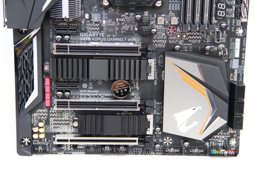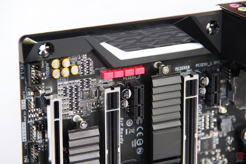 เมนบอร์ดรุ่นนี้มีช่องเสียบ M.2 PCIe3.0 x4 มาให้ทั้งหมด จำนวน 2 ช่องด้วยกัน โดยเป็นขนาด Type-22110 และ 2280 อย่างละชุด โดยมาพร้อมกับชุด Heatsink ระบายความร้อน M.2 ที่ทาง GIGABYTE เรียกว่า AORUS M.2 Thermal Guard จัดว่าเด็ดเลยทีเดียว  ส่วนช่องเสียบ PCIe2.0 x1 นั้นมีทั้งหมด 2 ช่อง, PCIe3.0 x16 มีทั้งหมด x3 ช่อง