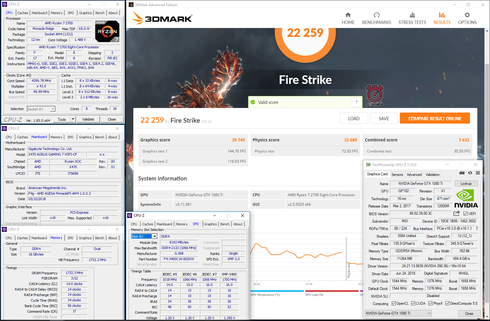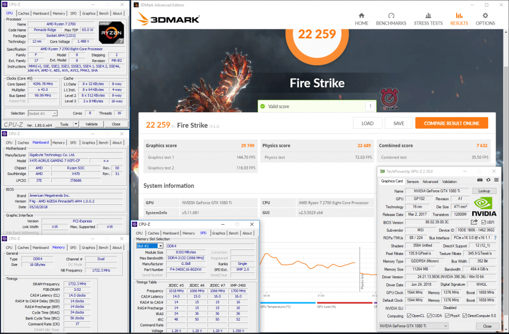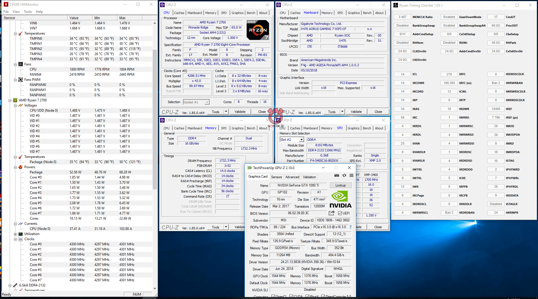 เอาล่ะครับมาถึงผลการ Benchmark ต่างๆ ที่เราทดสอบสำหรับค่า Overclock Config ครั้งนี้ดูกันว่า CPU AMD RYZEN 7 2700 8C/16T @ 4.3Ghz Vcore 1.50V (Full Load 1.55v/LCC Turbo) และความเร็วแรม DDR4-3466CL14-14-14-34 1.45V + Tight Sub-Timing แบบแน่นๆ รีดพลังแรมออกมาทุกหยด แรงไหนลื่นจริงๆ ครับ รวมๆ แล้วมอมองว่าเมนบอร์ด GIGABYTE X470 AORUS GAMING 7 WIFI ตัวนี้ก็ออกแบบภาคจ่ายไฟของ CPU มาได้ค่อนข้างทรงพลังเลยทีเดียว และยังมาพร้อมกับ Heatsink ภาคจ่ายไฟคุณภาพ นำความร้อนอกมาได้อย่างรวดเร็ว…. ไปชมรายละเอียดของ Benchmark ต่างๆ กันเลยครับว่าทดสอบผ่านแบบชิวๆ + แรงแค่ไหน