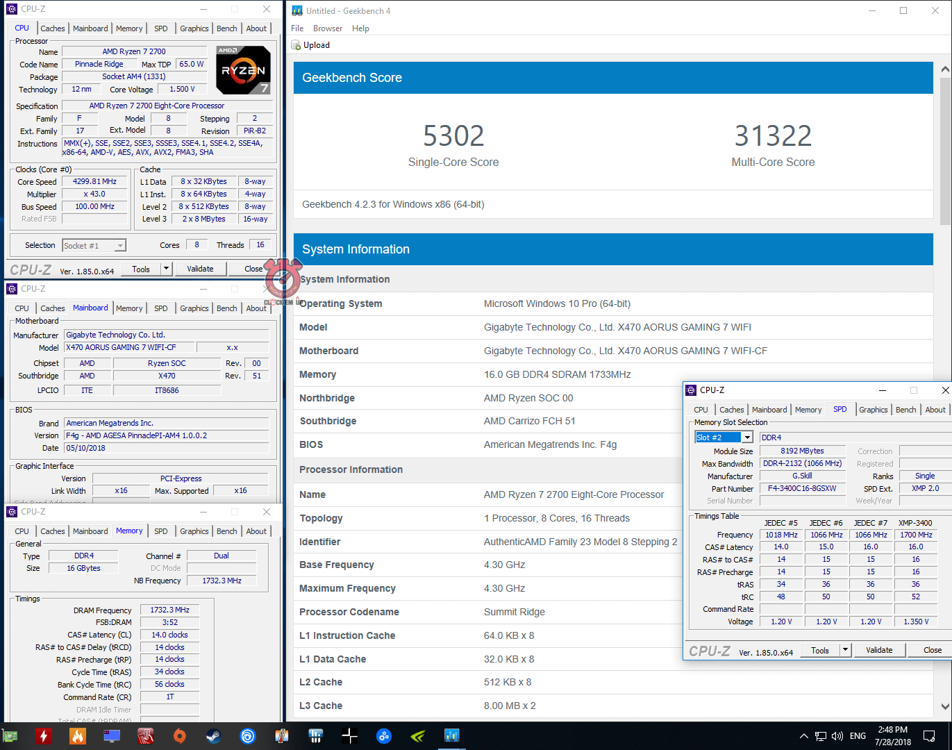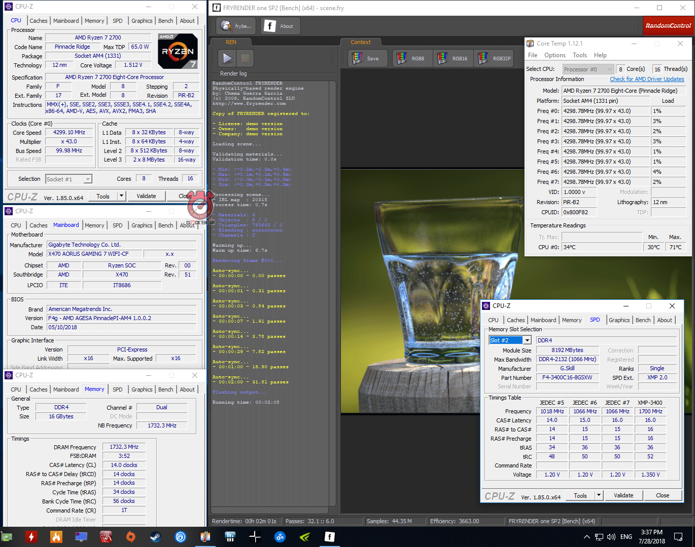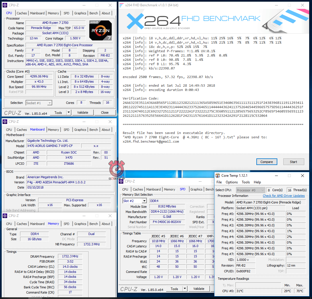 AMD RYZEN 7 2700 8C/16T + GIGABYTE X470 AORUS GAMING 7 WIFI Overclocking Review