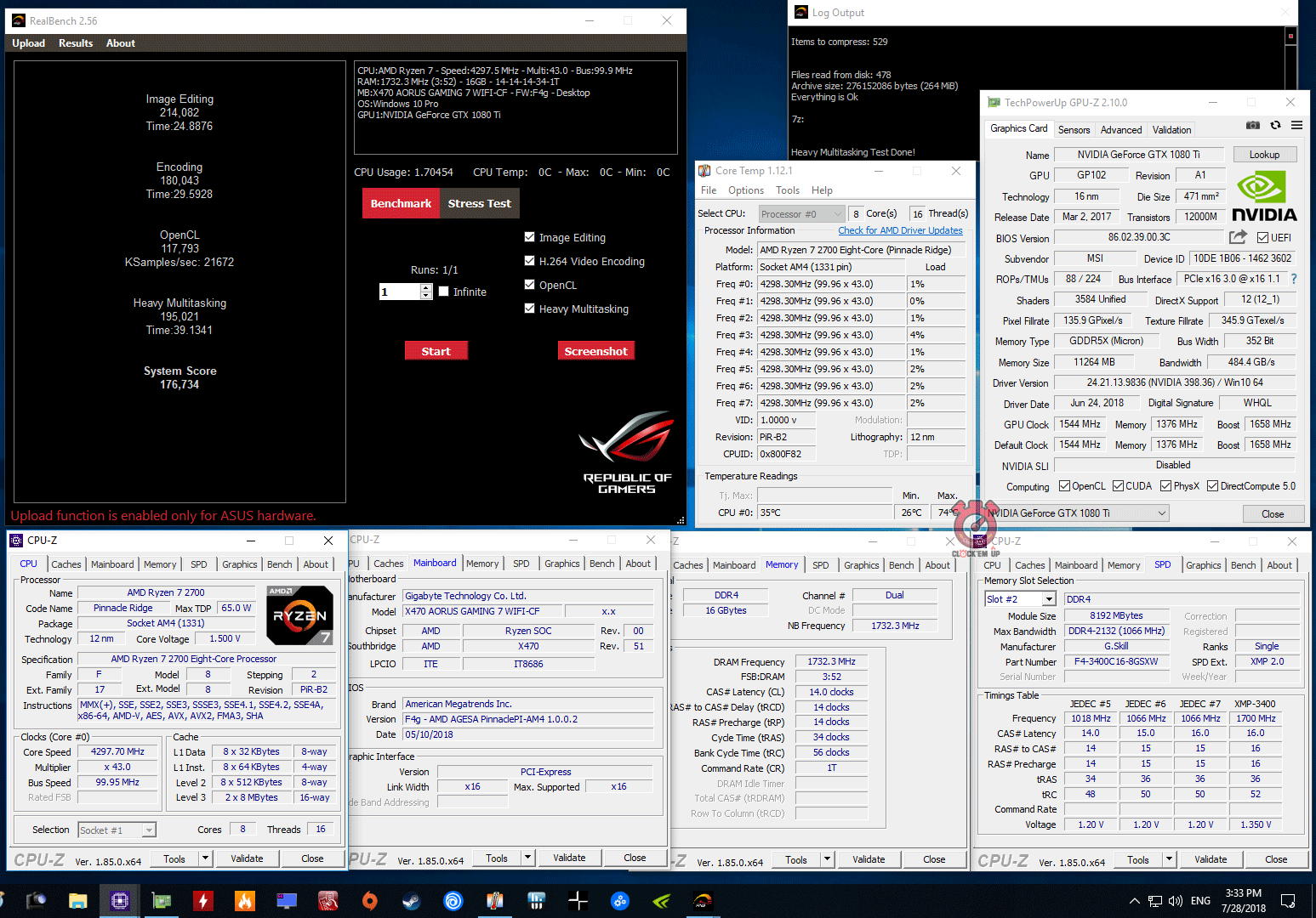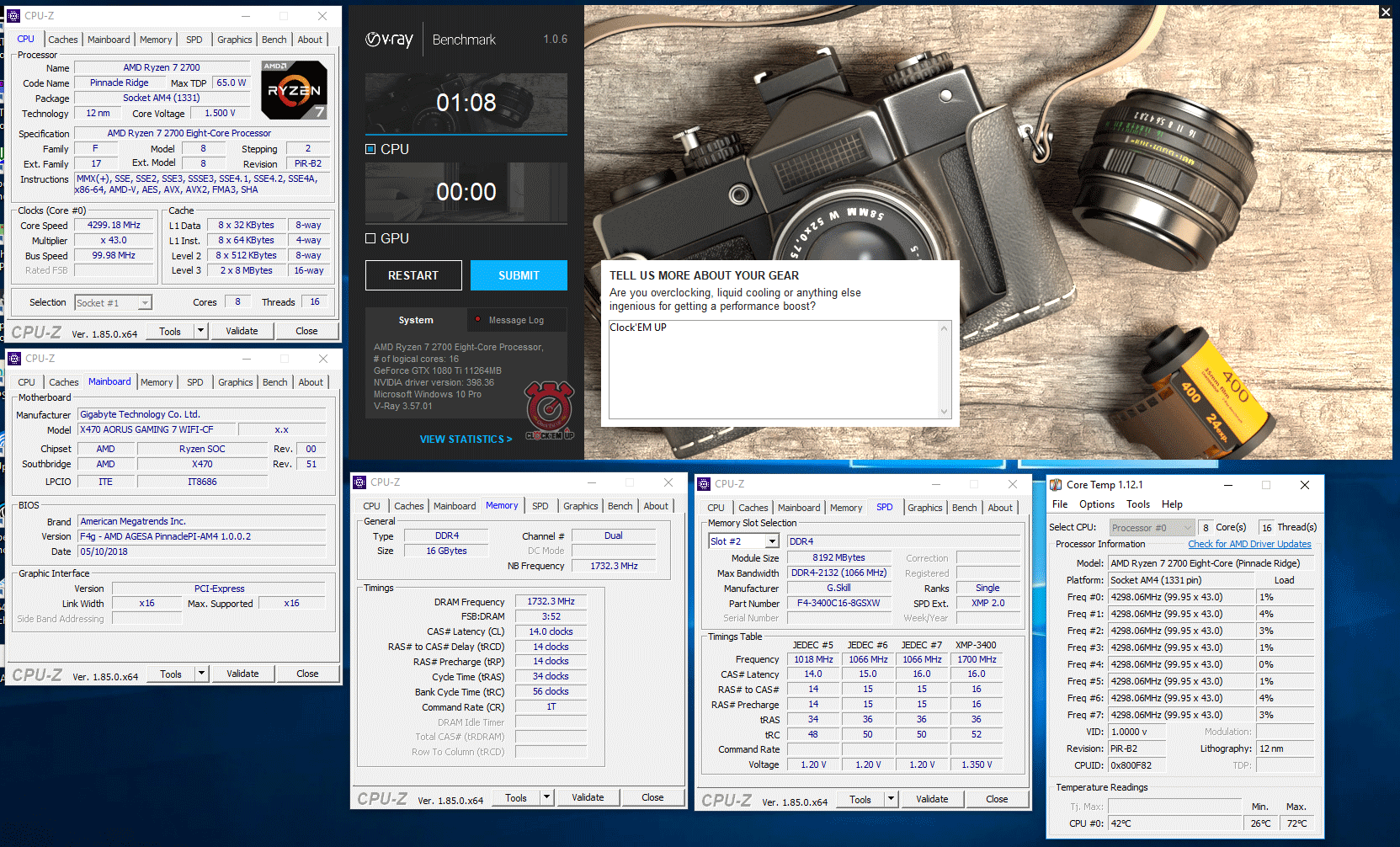 ภาพบรรยากาศในการทดสอบระบบครั้งนี้ครับ โดยเราจะทำการ Overclock CPU AMD RYZEN 7 2700 8C/16T ร่วมกับเมนบอร์ด GIGABYTE X470 AORUS GAMING 7 WIFI และแรมจากค่าย G.SKILL SNIPER X DDR4-3400 CL16-16-16-36 16GB-KIT 1.35V