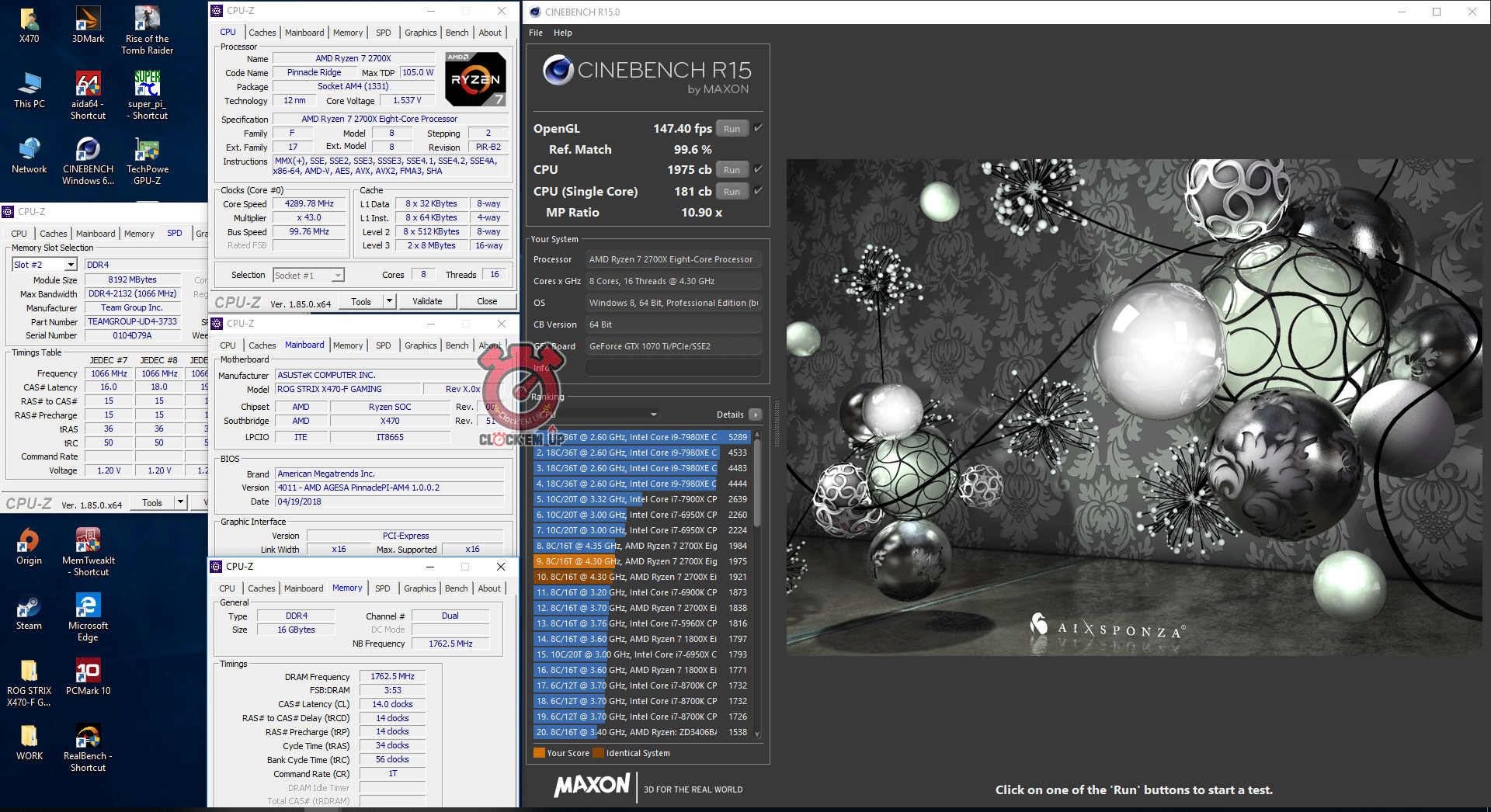 หลังจากชมรายละเอียดค่า Overclock Config กันไปแล้วเราก็มาชมผลการทดสอบของ Benchmark ต่างๆ กันต่อเลยดีกว่าครับว่าเมนบอร์ด ASUS ROG STRIX X470-F GAMING ตัวนี้จะทำการรีดพลังแฝงของ AMD RYZEN 7 2700X ตัวนี้ได้สีกเท่าไรกับค่าการ OC @ CPU 4.30Ghz + DDR4-3533Mhz CL14-14-14-14-34 1T + Tight-Sub Timing แบบแน่นๆ แรงจนตัวโก่ง… พร้อมแล้วไปชมกันเลยครัช….. ^O^