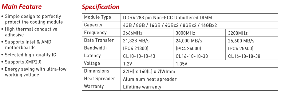 สำหรับรายละเอียดทางเทคนิคของแรมรุ่นนี้ก็คือแรม DDR4 ความเร็ว 3200 (1600Mhz) มีค่าหน่วงเวลาในการเข้าถึงข้อมูลอยู่ที่ CL16-18-18-38 ใช้ไฟเลี้ยงต่ำเพียง 1.35V เท่านั้น และแรมคู่นี้มาในขนาด 16GB หรือแผงละ 8GB จำนวน 2 แผงนั่นเอง