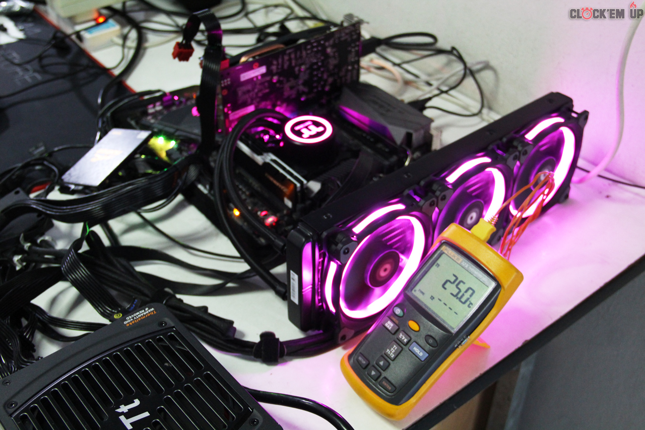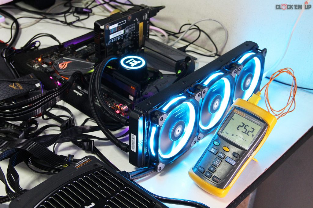 ภาพบรรยากาศในการทดสอบครั้งนี้ครับ โดยตัวผมเองก็ได้ทำการทดสอบชุดน้ำรุ่นนี้ทั้ง 2 Platform ได้กันโดยชุดแรกเป็น CPU Intel Core i5-7640X + ROG RAMPAGE VI APEX และอีกหนึ่งชุดเป็น CPU Intel Core i7-8700K 6C/12T + ROG MAXIMUS X APEX โดยเราจะทำการทดสอบในห้องแอร์อุณหภูมิประมาณ 24-25c องศาเซลเซียสตลอดการทดสอบ
