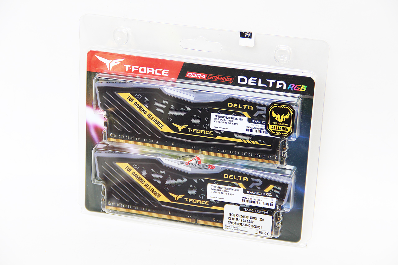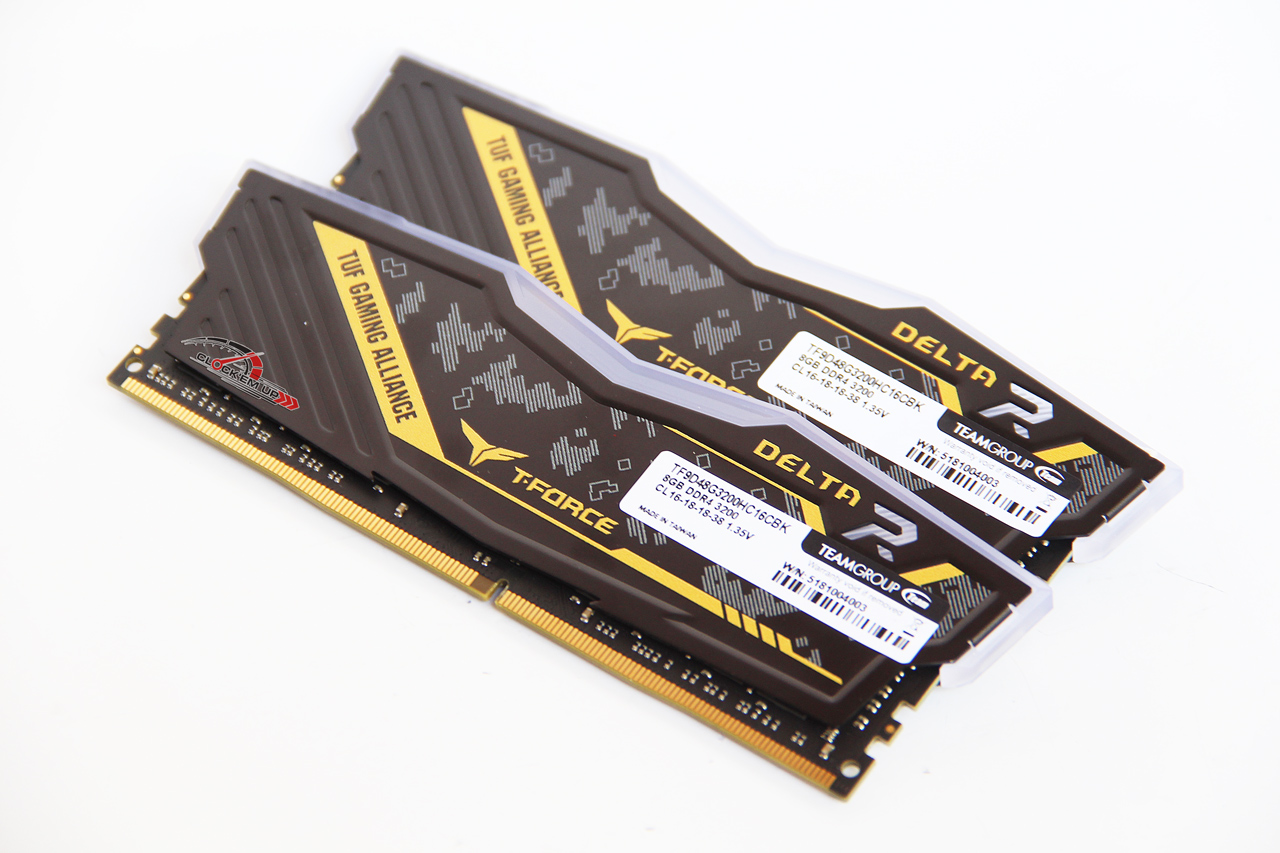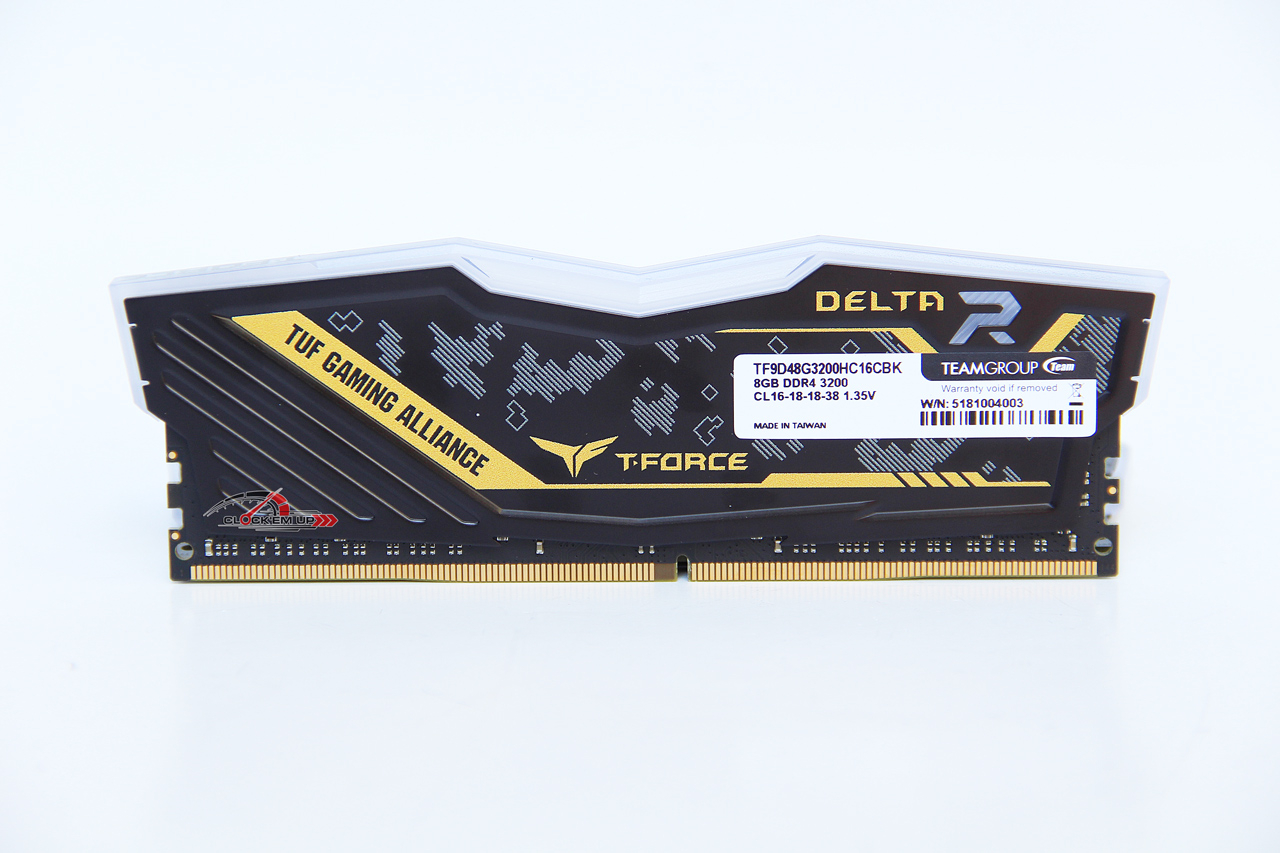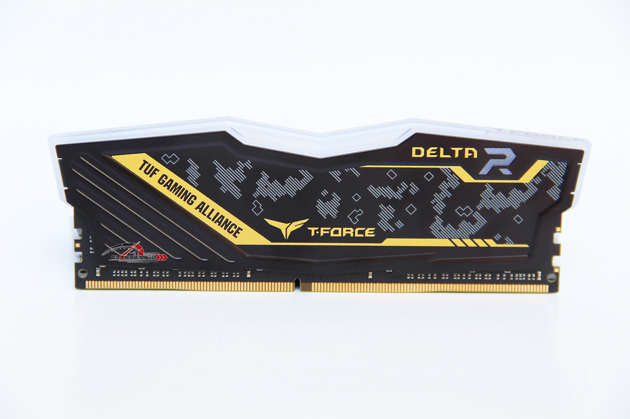 T-Force DELTA RGB DDR4-3200Mhz CL16-18-18-38 16GB-Lit 1.35V รุ่นนี้โครงสร้างเดิมของชุด Heatspreader นั้นยังคงเป็นแบบเดิมของแรมในรุ่น DELTA RGB Series เพียงแค่มีความพิเศษในเรื่องของลวดลาย TUF GAMING ALLIANCE