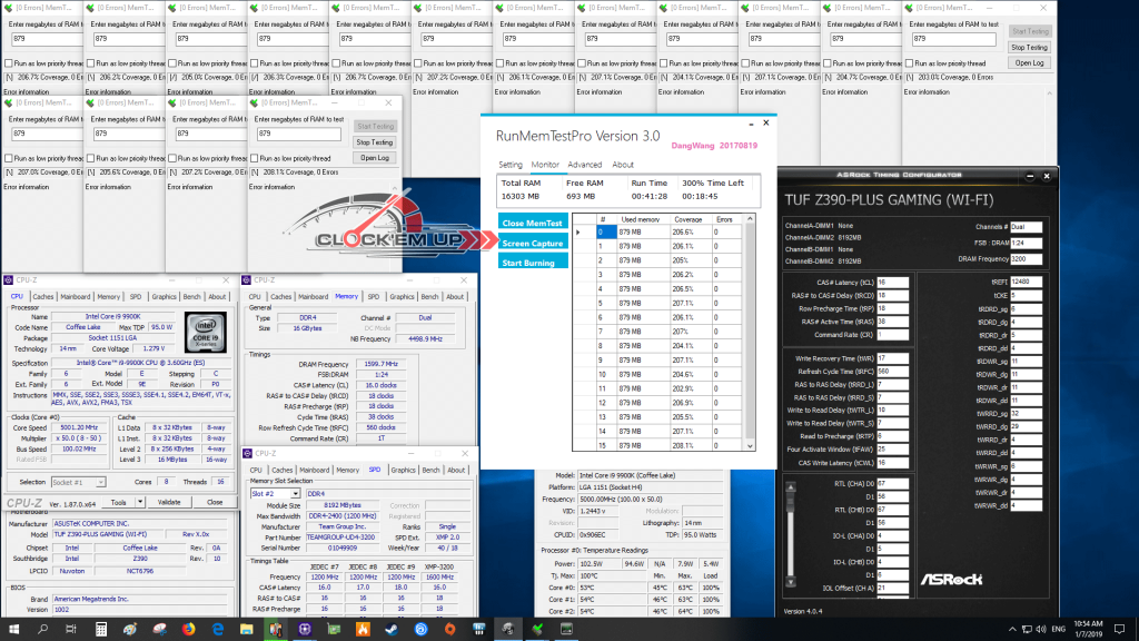 ส่วนเรื่องของการ Overclock แรมนั้นบอกก่อนเลยว่า DDR4 ที่มีไฟ RGB ของ T-Force ในช่วงนี้ก็ยังคง Lock ไม่ให้ทำการ Overclock ได้เยอะเหมือนเดิมครับ ไม่ได้ต่างไปจาก T-Force Night Hawk หรือรุ่นอื่นๆ เลย ดังนั้นไม่ต้องถามย้ำมานะครับว่าลากไม่ได้เหรอ ? จริงๆ แล้วลากพอได้ครับเปิดติด ไปจนถึง 3733Mhz+ แต่ก็ทำได้เพียงบางครั้งและไม่ได้มีความเสถียรภาพอะไรเลย พอกด Benchmark ก็จอฟ้า อารมณ์เดียวกับ Night Hawk RGB ดังนั้นรีวิวฉบับนี้ผมจึงยืนพื้นที่ความเร็วตาม Spec ก่อนที่ DDR4-3200Mhz CL16-18-18-38 1T 1.35V และทำการกด Sub-Timing หลายๆ จุดเท่าที่ระบบจะ Boot และสามารถทดสอบ Memtest และ Benchmark ต่างๆ ผ่านได้อย่างมีเสถียรภาพครับ ไปชม Benchmark ต่างๆ กันเลย…..