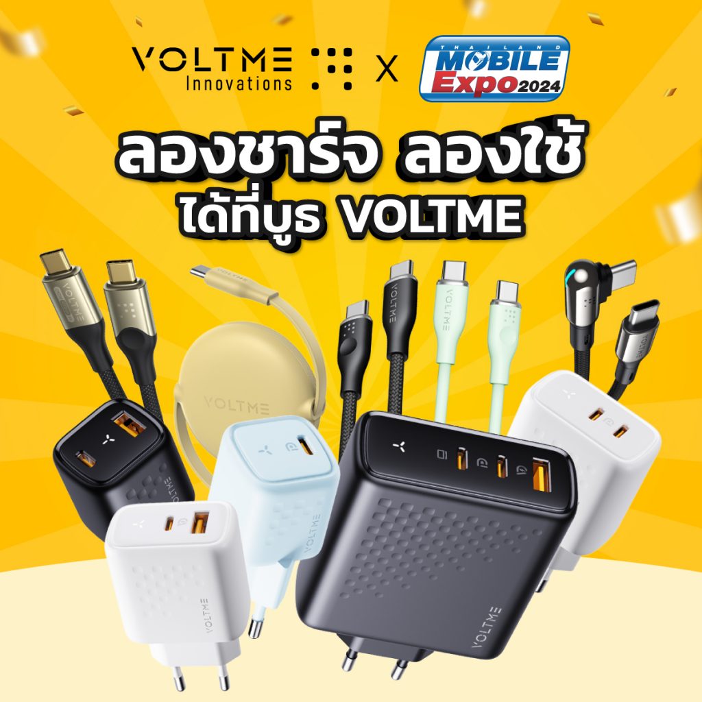 VOLTME เตรียมสร้างความตื่นเต้นให้กับเหล่าเทคเลิฟเวอร์ที่งาน Thailand Mobile Expo 2024 ที่จะจัดขึ้นระหว่างวันที่ 24-27 ตุลาคม 2567 ณ ศูนย์การประชุมแห่งชาติสิริกิติ์ ฮอลล์ 6 พบกับสินค้าชาร์จไฟระดับพรีเมียมที่ออกแบบมาเพื่อยกระดับประสบการณ์การชาร์จของคุณอย่างเต็มประสิทธิภาพ!