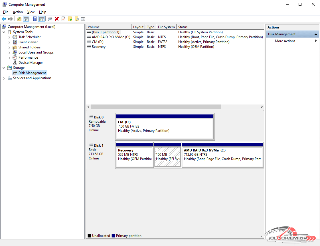 ถ้าลง RAID 0 แบบสมบูรณ์ มันก็จะมองเห็นเป็น Disk ลูกเดียวกันตามภาพเลยครับ