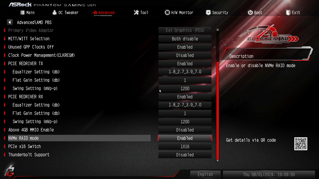 เมื่อเข้าไปด้านในของเมนู AMD PBS ให้เลื่อนลงไปด้านล่างสุด จะเห็น NVMe RAID mode เปิดเลือกเป็น Enable จากนั้นกด F10 / Save BIOS หนึ่งครั้งแล้วกลับเข้ามาอีกที…