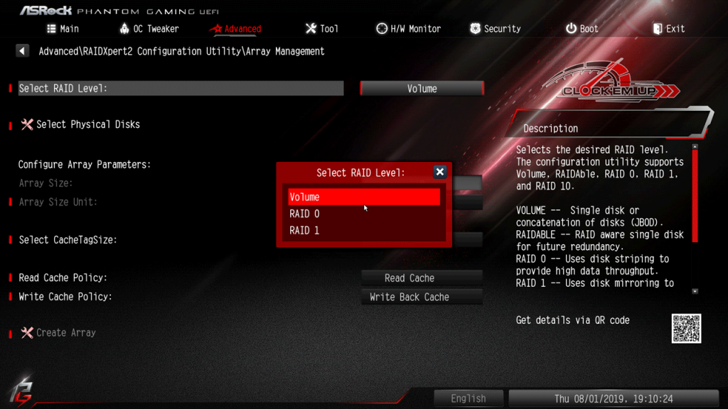 เลือกตรงที่ Select RAID Level ว่าจะเอาแบบไหน และสำหรับบทความนี้จะเป็น RAID 0 ครับ ก็เลือกไปเลย