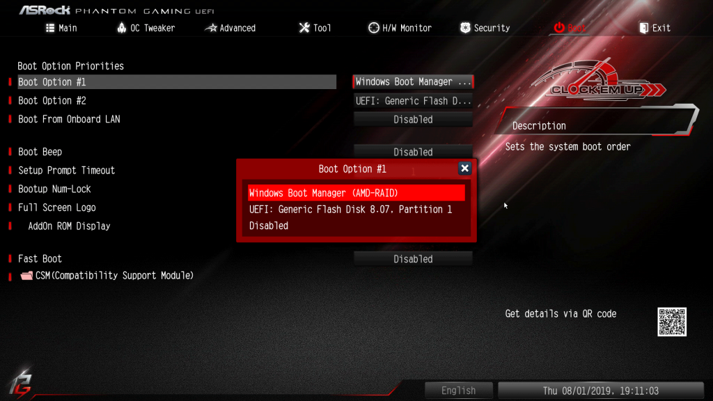 เมื่อทำการ Setup เรียบร้อยแล้ว ก็จะเห็นตัว Boot เป็น AMD-RAID ดังภาพเลยครับ