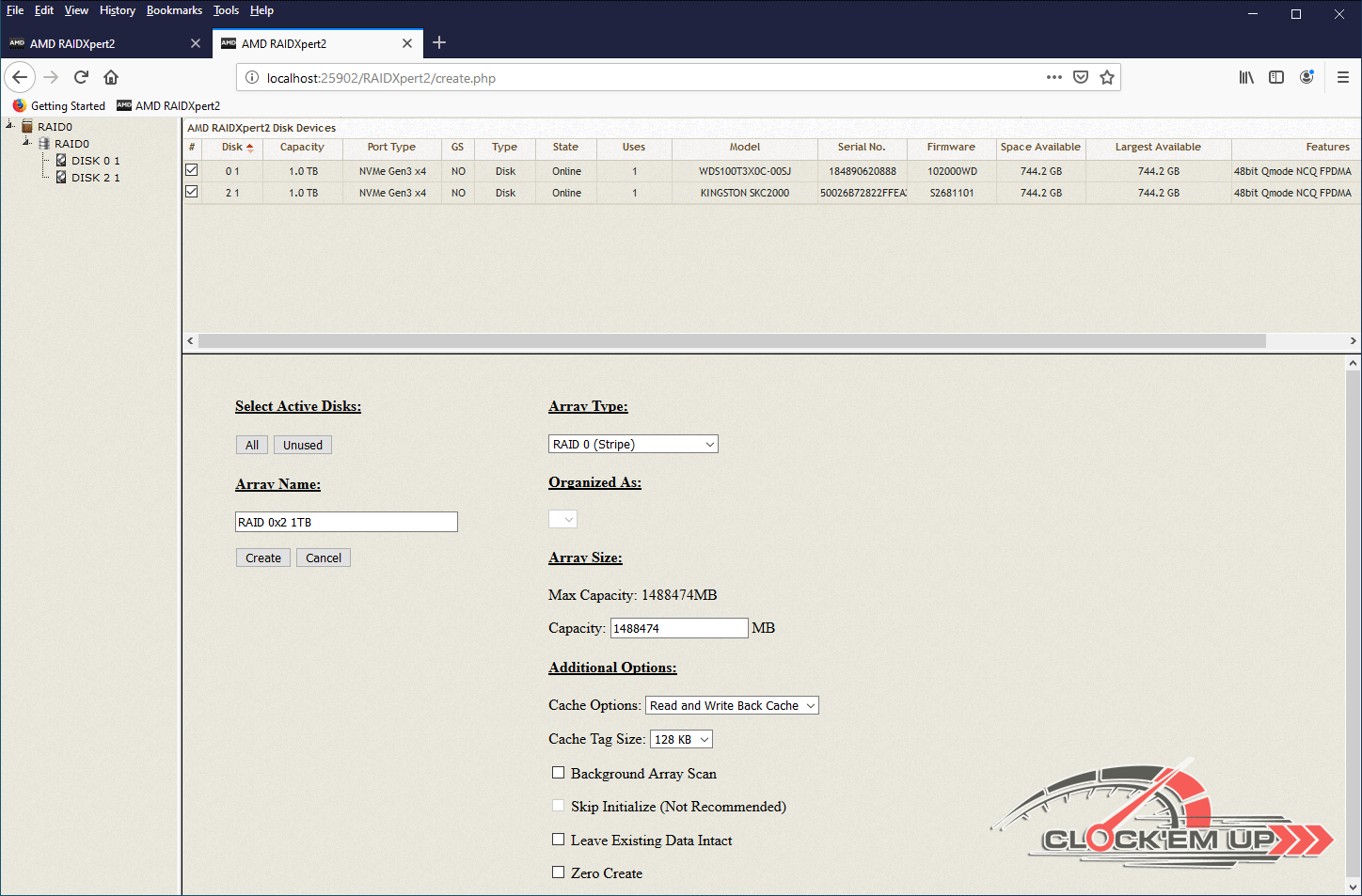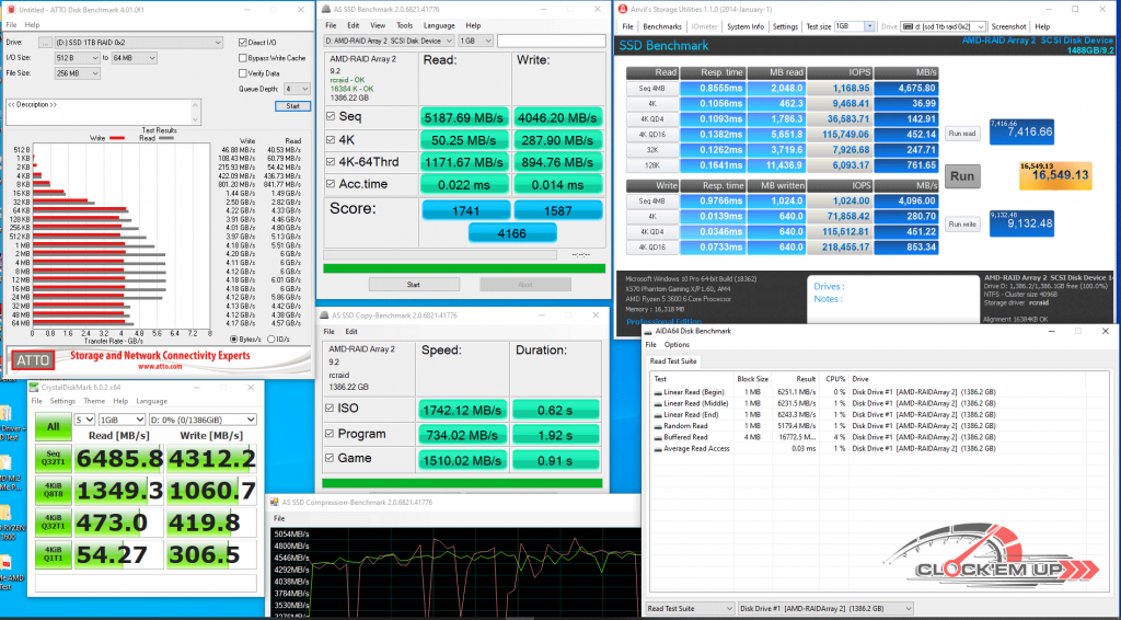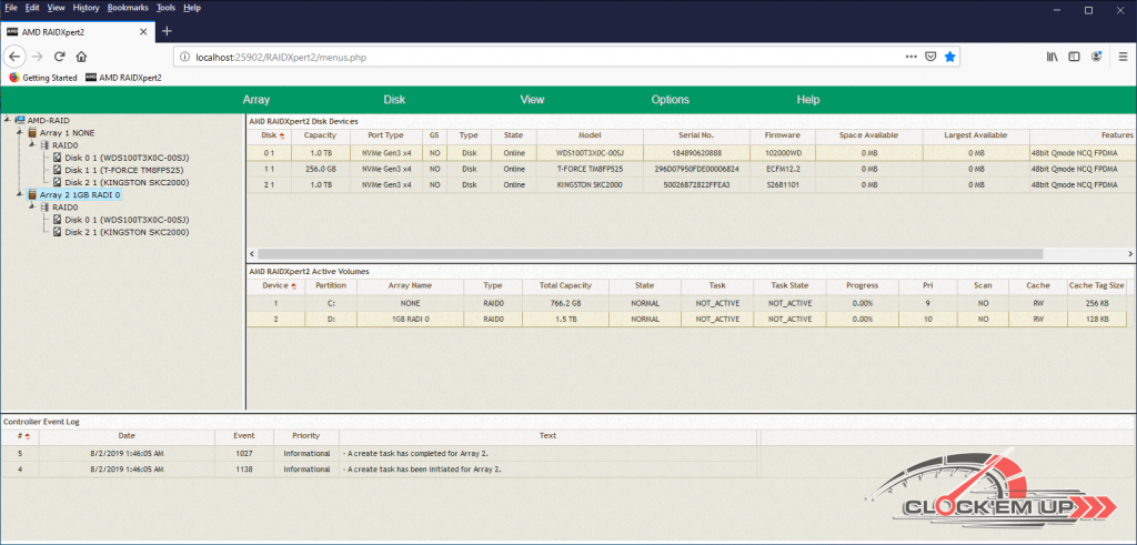 สำหรับพื้นที่ที่เหลือจากการต่อ RAID 0 x3 NVMe SSD ในชุด Array 1 เราก็ยังสามารถสั่งเอาพื้นที่ของ SSD ลูกละ 1TB ที่เหลืออยู่เอามาทำ RAID 0 ได้อีกหนึ่งชุด ด้วยโปรแกรม AMD RAIDXpert2 ทำให้เราไม่ต้องเสียพื้นที่ไปป่าวๆ กับชุด RAID 0 x2 จาก Array ชุดที่ 2 ขนาด 1.5TB ซึ่งประสิทธิภาพที่ทดสอบออกมาก็แรงตาม Step ของ RAID 0 จริงๆ เลยล่ะครับ ลองพิจารณาจากบทความได้ครับ ^^”