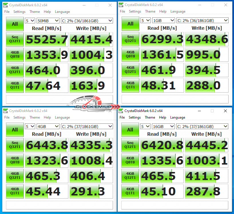 และสำหรับ CrystalDiskMark นั้้นก็มีผลการทดสอบที่ค่อนข้างออกมาดูดีกว่า AS SSD อยู่นิดหนึ่งครับ อย่างน้อยก็เห็นความเร็ว Seq Read/Write @ 6139/3121MB/s ที่ขนาดไฟล์ทดสอบ 16GB