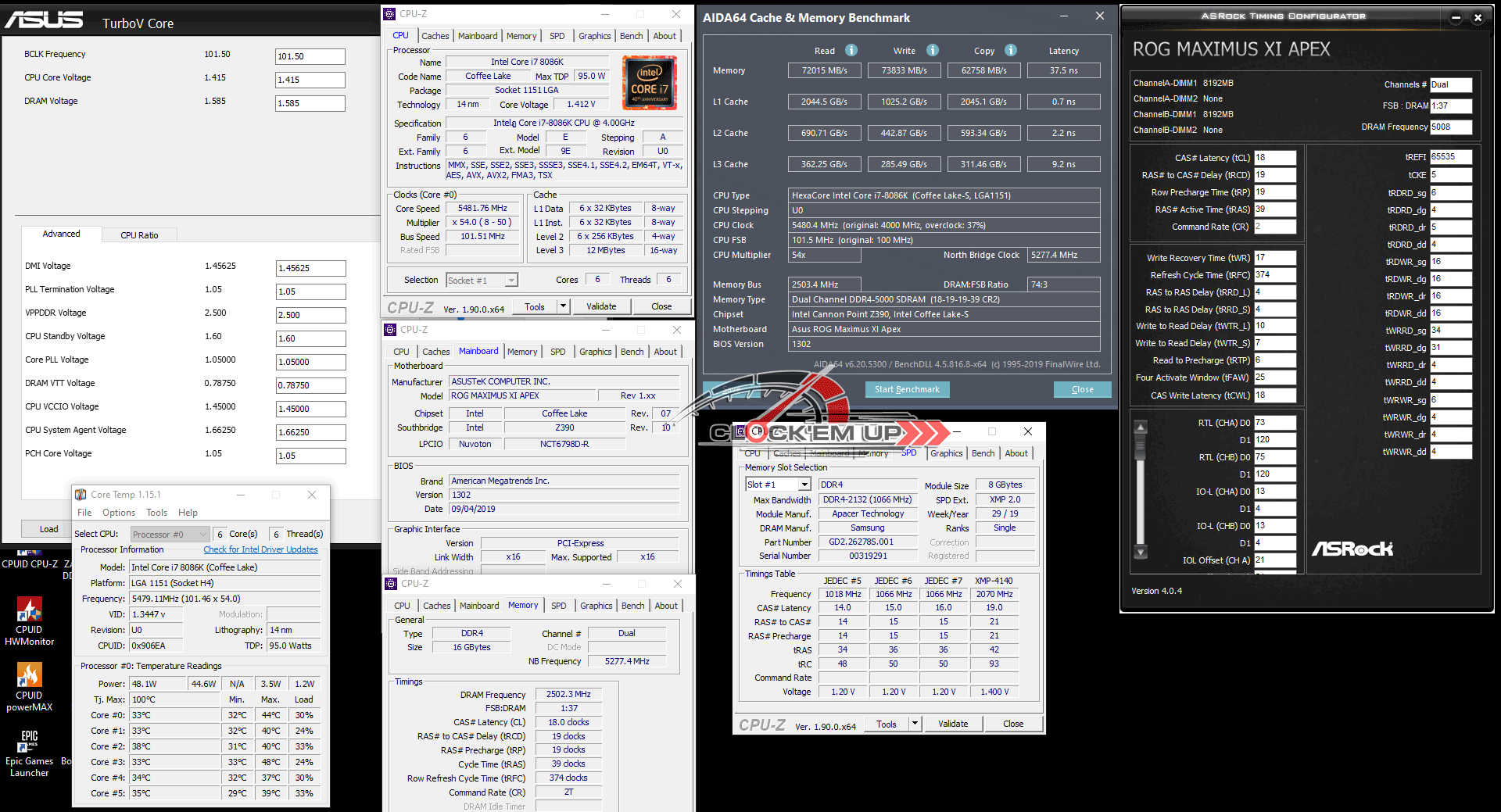 ลากกันแบบสุดๆ ก็พบว่าความเร็วแรมระดับ DDR4-4900 ถึง DDR4-4933Mhz นั้นบูทติดได้ไม่ยากนักครับ แล้วลากต่อที่ความเร็วระดับ DDR4-5000Mhz CL18-19-19-38 + Tight Sub ด้วยไฟเลี้ยงไม่สูงมากเพียง 1.585V ก็เพียงพอที่จะเข้าสู่ OS ได้แบบไม่ยากเลย จัดว่าเป็นชิป B-Die เกรดค่อนข้างดีเลยทีเดียว ไปชมความแรงกันเลยครับ ^^”